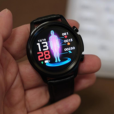 Monitor de concentração sanguínea: Os algoritmos avançados deste smartwatch calculam a cor dos vasos sanguíneos e fornecem um relatório da sua saúde.